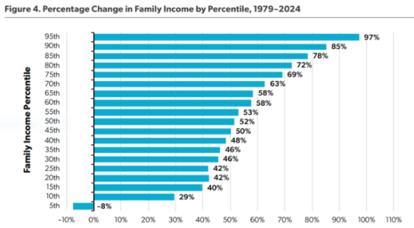 - Finally, look at the percentage change in family income by percentile over the same time period (see below). Yes, the higher the percentile, the faster the family income is growing. But all percentile groups are growing in earned income, except for the very bottom group.