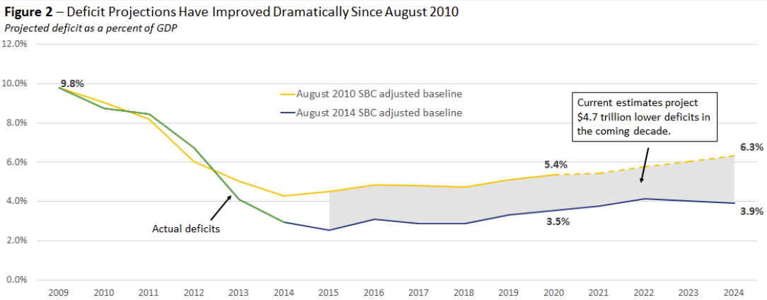 - “Deficits have fallen dramatically over the last five years, and projected debt and deficits have also declined.”