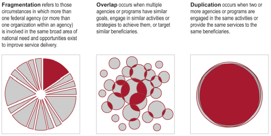CaptureBeginning in 2011, Senator Coburn has prevailed upon the Government Accounting Office to issue annual reports entitled “Actions Needed to Reduce Fragmentation, Overlap and Duplication and Achieve Other Financial Benefits.”  Now, after four years, a total of 226 specific actions have been recommended by the GAO.  GAO’s Action Tracker shows that the government has addressed about 19% of the efficiency recommendations made by the GAO.  Be thankful for small progress!