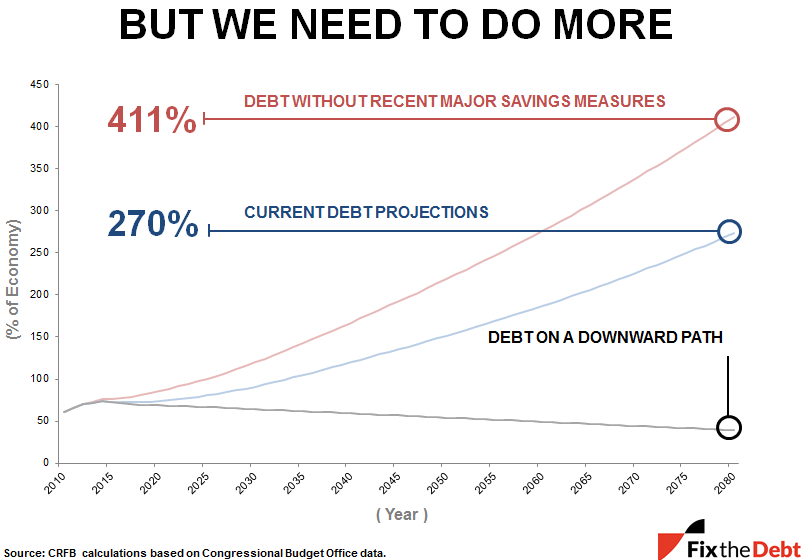 “My first message is that we don’t have to pay off the debt or even balance the budget going forward. Realistically we need to shrink our annual deficits in order to put the debt on a downward course as a percent of our growing economy.”