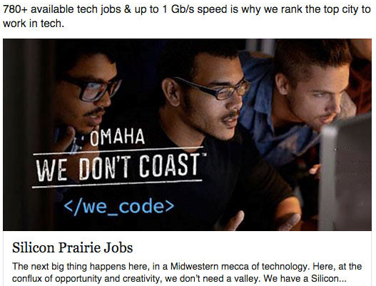 - The Omaha Chamber of Commerce is running an ad campaign in Seattle to appeal to soon-to-be-laid-off Microsoft workers, because there are lots of vacant tech positions in Omaha.