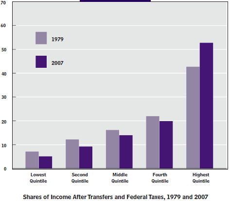 How bad is income inequality in the U.S. and what should be done about it?  This is a question of great current interest with many different points of view.  The chart just below from the Congressional Budget Office shows the extent of income inequality and also shows that it has gotten somewhat worse between 1979 and 2007, just before the onset of the Great Recession.  And we know that our stagnant economy has made it worse yet between 2007 and the present.