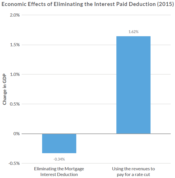 - Eliminating the mortgage interest deduction would raise $75 billion per year. Reducing individual tax rates by the same amount would grow the economy by 1.61% of GDP over 10 years.