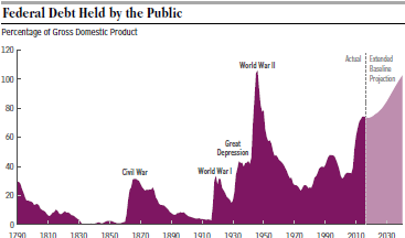Today we have a very large debt bubble as illustrated in the above chart from the Congressional Budget Office. Why is this so serious?