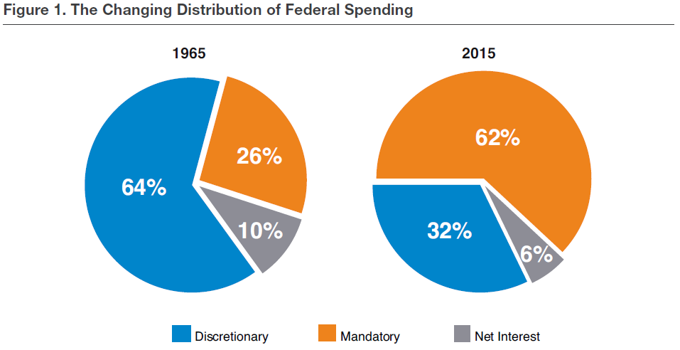 As the American Enterprise Institute,  among many other think tanks, makes abundantly clear, we are spending more and more of our federal budget on entitlements  as opposed to all of the many other federal responsibilities which are lumped together as discretionary spending.  In other words, the only way to fix our deficit and debt problems is to achieve better control over entitlement spending.