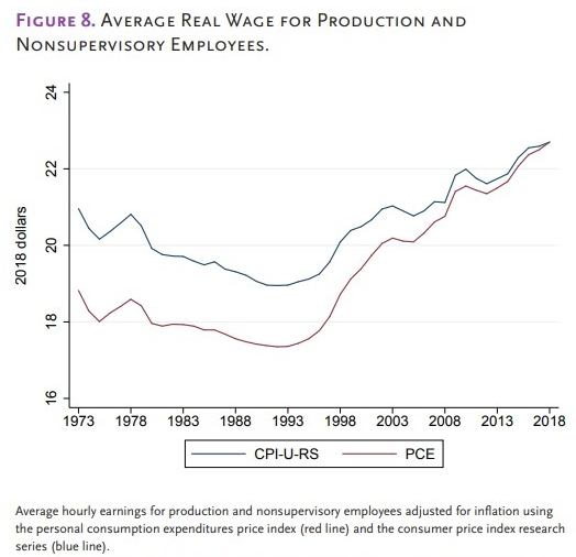 - Wages have not been stagnant for decades. As the figure below shows, during the past three decades, wages for typical workers have grown by at least 20% (perhaps as much as 33% depending on how they are measured). It is unreasonable to describe (as does the main-stream media) this growth as stagnant.