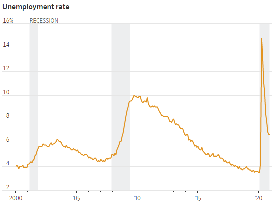 - The unemployment rate, a very low 3.5% when the pandemic hit, has already dropped back down to 6.7% from a pandemic high of over 14%.