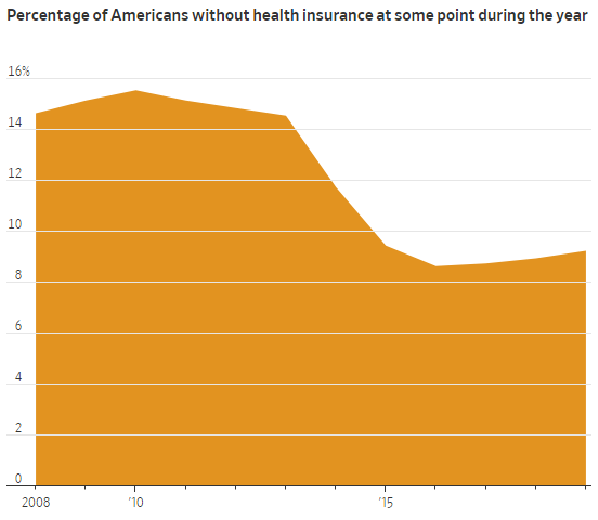 - Only a relatively low 9.2% of U.S. citizens are without health insurance, the lowest number in many years.