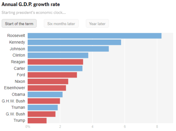 The New York Times published an article several days ago, “The Economy Does Much Better under Democratic Presidents. Why?” Their conclusion is based on the chart of GDP growth going back to FDR (attached). Based on this chart alone it certainly appears that they are correct.