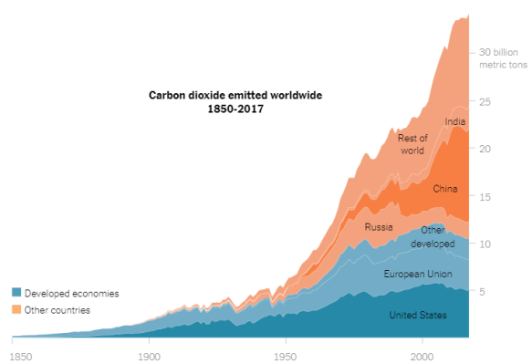 - Worldwide emissions are growing. (https://www.nytimes.com/article/climate-change-global-warming-faq.html) Even though the U.S. and Europe have already started to reduce carbon emissions, the developing world is increasing emissions at a much faster rate (see chart). (https://www.nytimes.com/article/climate-change-global-warming-faq.html) which means that global emissions are still increasing rapidly overall.