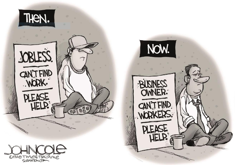 • The jobs slowdown.  With 7.4 million job openings, U.S. employers added a net of only 266,000 jobs in April.  The problem is the additional $300 weekly federal jobless bonus that means too many unemployed workers can make more money by staying home than returning to work.  Even when average hourly earnings rose 8.4% in April (on an annual basis) and even faster for low-income workers.