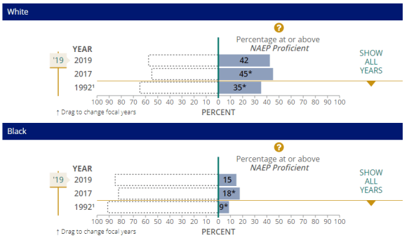 On the other hand, the Wall Street Journal columnist, William McGurn, asks “Is it okay that black eighth-graders aren’t proficient in math and reading?” He examines 27 urban school districts listed in the Trial Urban District Assessment of the National Assessment of Educational Progress for 2019 (before Covid).