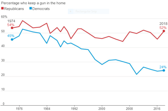 - Gun Control. Notice the widening gap between Republicans and Democrats on the attitude towards gun possession. Red states and blue states will decide gun control issues differently as their legislatures see fit. This is how it should be done.