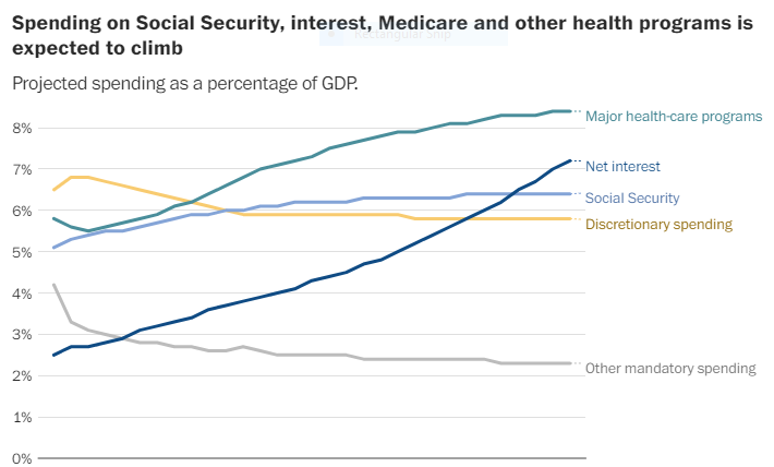 • Major healthcare programs are the largest single item in the federal budget at 24%. They are also the fastest-growing category of the federal budget (along with net interest).  The Washington Post has shown that it is possible to save almost $100 billion per year in Medicare costs alone by more effective management of the program.  The largest single component of this savings, $40 billion, comes from making Medicare Advantage more cost-effective.  Other big savings for Medicare would come from the more careful addition of new procedures.  Medicare is an important social program but must be reformed to remain sustainable.