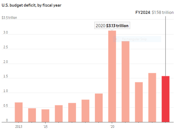 The deficit of $1.7 trillion in FY 2023 (see attached chart) was way too large with no recession or other emergency, such as a pandemic.