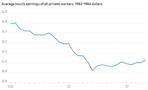 • Average Income. The Bureau of Labor Statistics reports that real (inflation-adjusted) average wages have fallen during the Biden administration (see the attached chart).