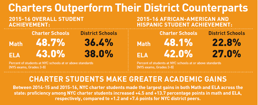 For example, charter schools are very successful in New York City and especially so for African-American and Hispanic students (see chart below).