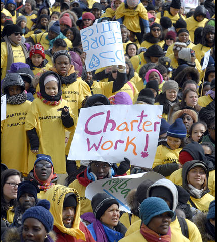 Charter schools are flourishing because poor inner city black parents are desperate to have their children attend a good school and the big city public schools are often very poor quality.