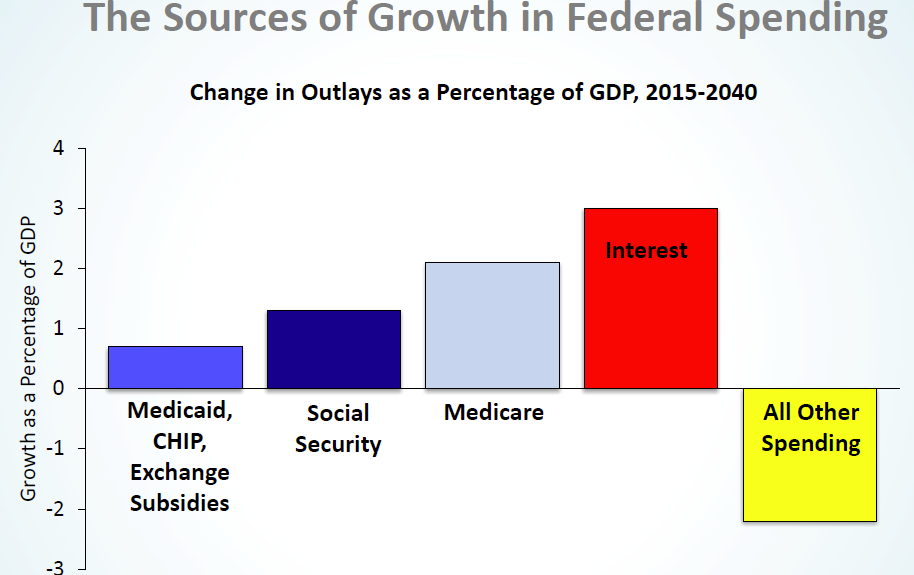 The major driver of our debt is the entitlement programs, Social Security, Medicare and Medicaid.  Social Security is self-funded from the payroll tax and can be shored up long term with some relatively simple adjustments such as raising the income cap on which the payroll tax is levied and/or SLOWLY raising the eligibility age for full benefits.  Medicaid costs can be controlled by block-granting it to the states with a fixed contribution from the federal government.