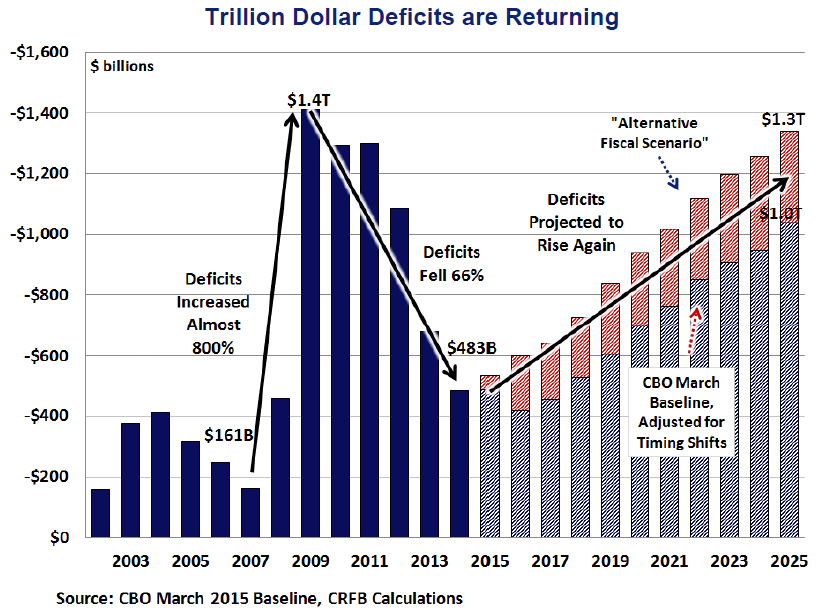 In the same way, having an explicit debt ceiling reminds us at regular intervals that we have a very serious problem which will eventually catch up with us if we don’t take strong action to address it.