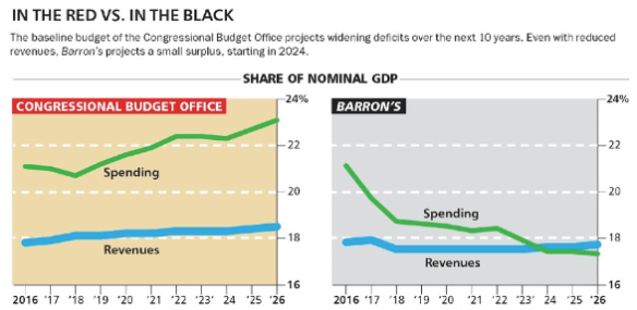One possible way to accomplish this herculean task has been laid out by Barron’s economic journalist Gene Epstein, see here and here. Mr. Epstein’s plan would balance the budget in ten years by decreasing projected spending by $8.6 trillion, with 60% of spending curtailments coming from the entitlement programs of Social Security, Medicare and Medicaid and the rest from both military and domestic discretionary programs.